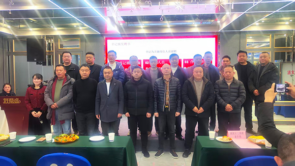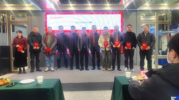 聘书颁发环节有序进行,彭勇会长为常务会长、秘书长、副会长颁发聘书,杜天华书记为名誉会长兼顾问、顾问颁发聘书,相关人员分别合影。党建环节,杜天华书记总结党建工作,宣布新增党组成员并合影。